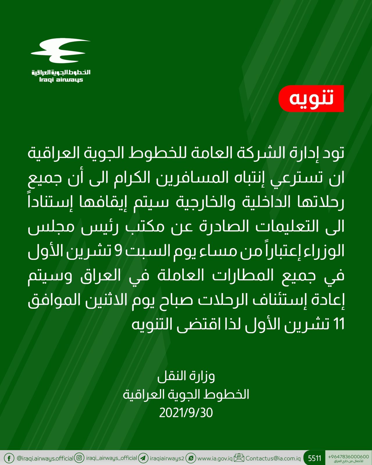 محلياتالخطوط الجوية تعلن ايقاف رحلاتها الداخلية والخارجية من 9 الى 11 تشرين الاول المقبل قبل 4 سنوات 1 مشاهدة شارك الوسومالانتخاباتالخطوط الجوية العراقيةقد يهمك أيضا عربي ودولي قرار جديد من مجموعة السبع والاتحاد الأوروبي: فرض حظر كامل على النفط الروسي قبل 9 دقائق 2 مشاهدات رياضة الفيفا يمنح جائزة السلام 2025 لدونالد ترامب قبل 48 دقيقة 7 مشاهدات أمن العراق يعلن إنشاء "بنك معلومات وطني" للأسلحة قبل ساعة واحدة 6 مشاهدات عربي ودولي قيود وضوابط جديدة.. اليابان تشدد سياسات الهجرة رغم شيخوخة السكان قبل ساعة واحدة 7 مشاهدات محليات العراق يستعد لاستقبال حالة جوية غير مستقرة وأمطار غزيرة اعتباراً من مساء الغد قبل ساعتين 5 مشاهدات