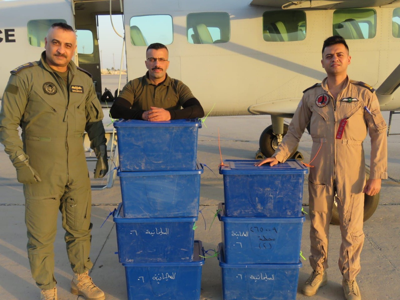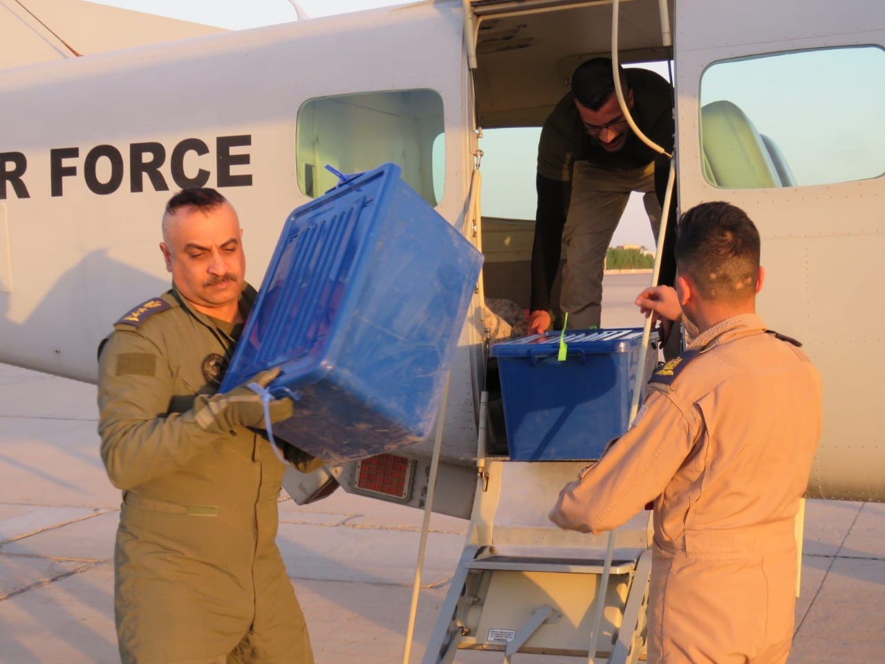 بالصور.. قيادتا القوة الجوية وطيران الجيش تباشران بنقل موظفي المفوضية وصناديق الاقتراع