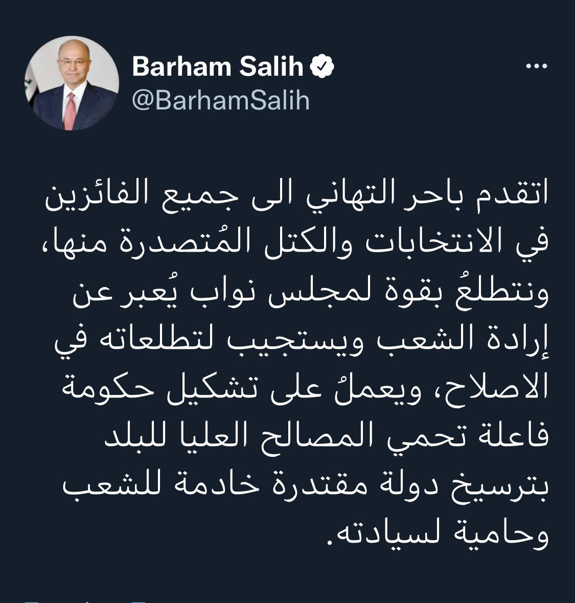 سياسةالرئيس صالح مهنئاً الفائزين بالانتخابات .. نتطلعُ بقوة لمجلس نواب يُعبر عن إرادة الشعب قبل 4 سنوات 1 مشاهدة شارك هم الوسومالانتخاباتبرهم صالحقد يهمك أيضا رياضة الجزائر تقسو على البحرين بخماسية في كأس العرب قبل 16 دقيقة 3 مشاهدات رياضة تشكيلة المنتخب الوطني العراقي لمواجهة نظيره السوداني في كأس العرب قبل ساعة واحدة 24 مشاهدات محليات سفارة العراق في طرابلس: اعادة 12 مهاجرًا الى البلاد دخلوا الأراضي الليبية بشكل غير شرعي قبل ساعة واحدة 7 مشاهدات سياسة وزارة الخارجية: رئيس الوزراء الهولندي يزور بغداد في شباط المقبل قبل ساعتين 8 مشاهدات أخبار منوعة عالم زلازل تركي يحذر: الهدوء الحالي وهم والكارثة قادمة قبل ساعتين 5 مشاهدات