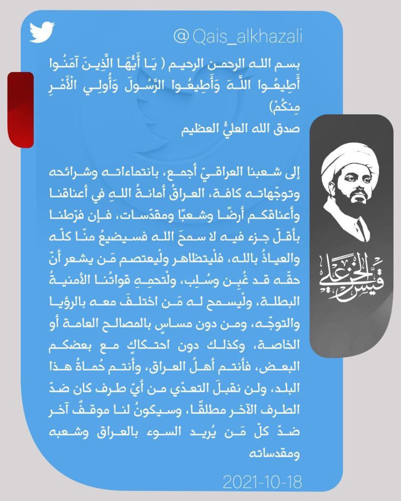 سياسةالخزعلي: فليتظاهر وليعتصم من يشعر ان حقه قد سُلب دون احتكاك او المساس بالمصالح العامة قبل 4 سنوات 3 مشاهدات شارك الوسومعصائب اهل الحققيس الخزعليقد يهمك أيضا عربي ودولي خبير عسكري أمريكي يحذر من احتمال مواجهة مباشرة بين روسيا وحلف "الناتو" قبل 7 ساعات 12 مشاهدات أمن الداخلية تعلن تفكيك 176 شبكة دولية للمخدرات وتؤكد نجاح التعاون الإقليمي قبل 9 ساعات 8 مشاهدات محليات الانواء الجوية: العراق يتأثر بمنخفض شبه قطبي يتسبب بأمطار وتدني درجات الحرارة قبل 10 ساعات 27 مشاهدات محليات الكهرباء: الإنتاج الحالي يصل لـ17 ألف ميغاواط قبل 10 ساعات 12 مشاهدات محليات الموارد: خطة لإنشاء 50 سداً لحصاد المياه غالبيتها في نينوى والأنبار قبل 11 ساعة 14 مشاهدات