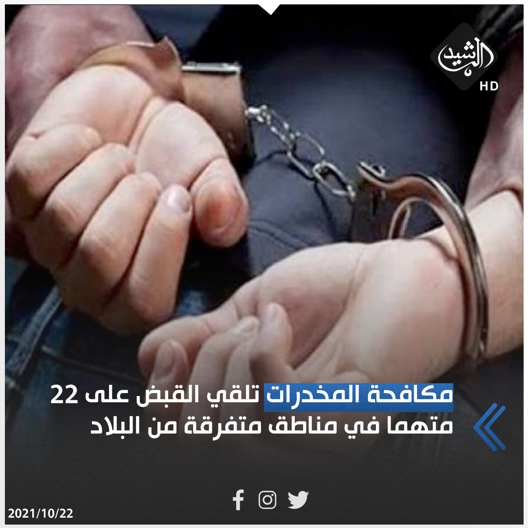 ألقت المديرية العامة لمكافحة المخدرات والمؤثرات العقلية، القبض على ( 22 ) متهما في مناطق متفرقة من البلاد.