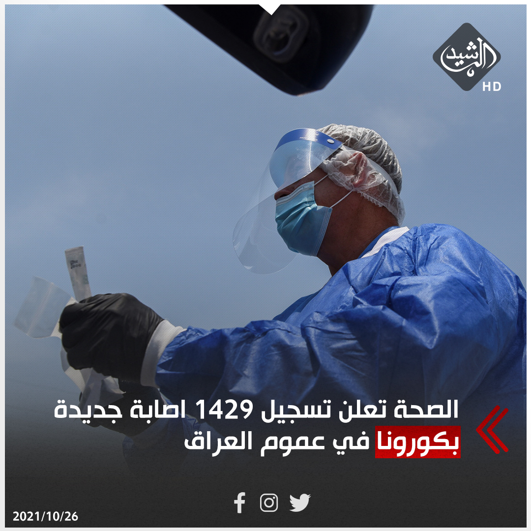 الصحة تعلن تسجيل 1429 اصابة جديدة بكورونا في عموم العراق