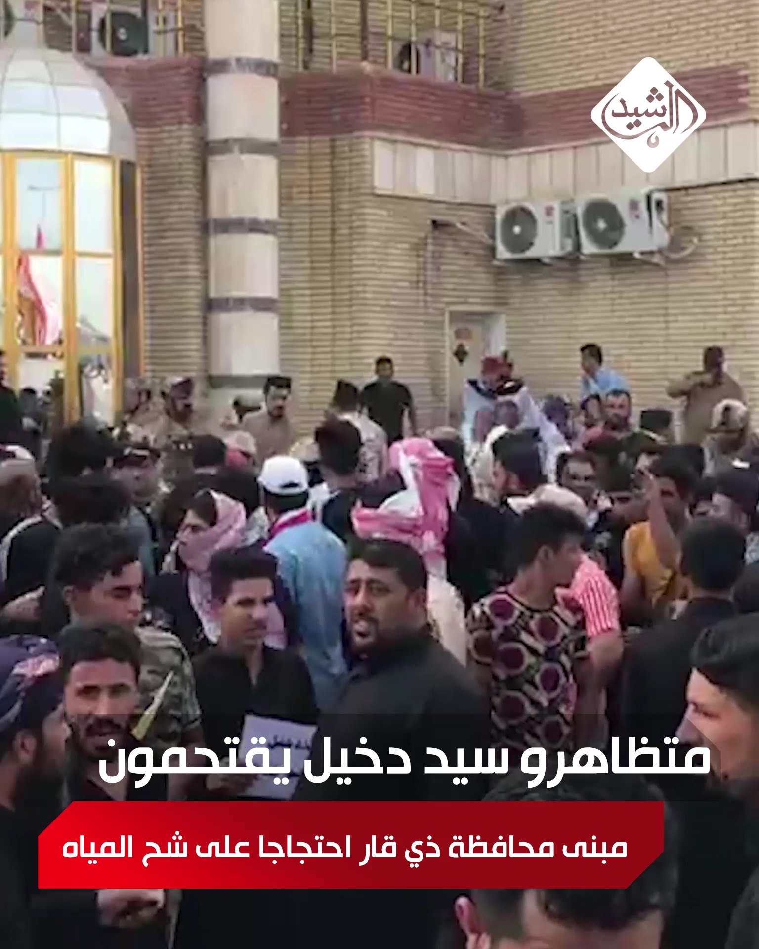 اقتحم متظاهرون من قضاء سيد دخيل، مبنى محافظة ذي قار احتجاجا على شح المياه.