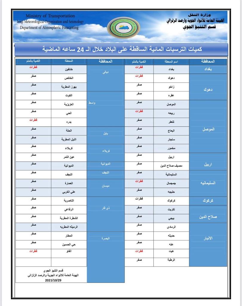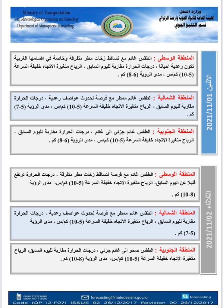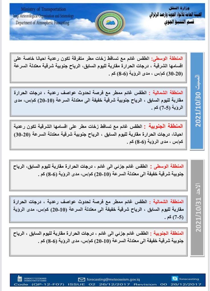 محلياتطقس العراق.. أمطار وعواصف رعدية خلال الايام المقبلة قبل 4 سنوات 21 مشاهدات شارك الطقستوقعت هيئة الأنواء الجوية، الجمعة، هطول امطار وعواصف رعدية في عدد من المناطق في العراق خلال الايام المقبلة. اقرأ ايضا طقس العراق.. أمطار رعدية وانخفاض بدرجات الحرارة خلال الأيام المقبلة المفوضية: الهيئة القضائية ردت أكثر من 800 طعن بنتائج الانتخابات حتى الآن الهيئة القضائية تحسم النظر بجميع الطعون المقدمة على نتائج الانتخابات وزير العدل يوجّه بإعفاء أحد المنفّذين العدول في بغداد لابتزازه إحدى المراجعات الوسومأمطارطقس العراققد يهمك أيضا محليات طقس العراق.. أمطار رعدية وانخفاض بدرجات الحرارة خلال الأيام المقبلة قبل 29 دقيقة 4 مشاهدات أقتصاد استقرار أسعار النفط وبرميل برنت فوق 63 دولاراً قبل 47 دقيقة 3 مشاهدات عربي ودولي الرئيس اللبناني: هدف المحادثات مع إسرائيل تجنب حرب ثانية قبل 10 ساعات 9 مشاهدات عربي ودولي مستشار المرشد الإيراني يهاجم بيان مجلس التعاون الخليجي بشأن الجزر الثلاث وحقل غاز "أرش" قبل 11 ساعة 11 مشاهدات سياسة قادة المجلس السياسي الوطني يتفقون على اعداد ورقة بشأن ادارة الدولة العراقية بالمرحلة المقبلة قبل 12 ساعة 9 مشاهدات