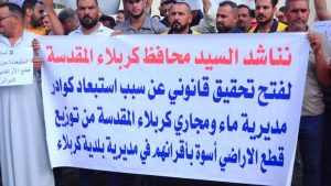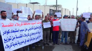 نظم المئات من موظفي دوائر الماء والمجاري في محافظة كربلاء، السبت، وقفة احتجاجية أمام مبنى المحافظة.