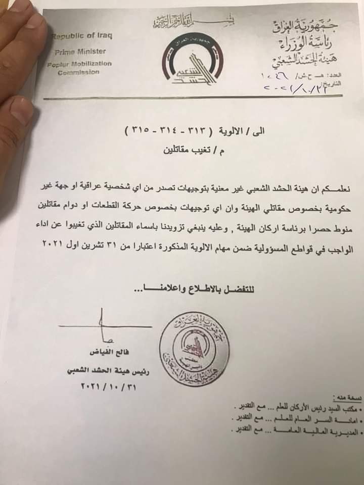 أمنهيئة الحشد: التوجيهات بحركة القطعات ودوام المقاتلين منوطاً حصراً برئاسة اركان الهيئة قبل 4 سنوات 12 مشاهدات شارك الحشد الشعبي قد يهمك أيضا عربي ودولي بينها الهول.. سوريا تعلن سعيها لإنهاء مخيمات احتجاز المرتبطين بـ”داعش” قبل 9 دقائق 1 مشاهدة أمن بسبب خلافات عشائرية.. مقتل رجل خمسيني بـ(11) إطلاقة نارية ضمن قضاء القرنة في البصرة قبل 30 دقيقة 4 مشاهدات عربي ودولي شمخاني: إيران مستعدة لسيناريوهات أوسع والمواجهة لن تقتصر على البحر قبل 33 دقيقة 6 مشاهدات محليات السيد الصدر: من يستخدم الغناء والطرب والموسيقى محتجاً بإحياء ذكر أهل البيت فهو عاصٍ وينبغي مقاطعته قبل ساعة واحدة 8 مشاهدات رياضة تراجع إسباني مفاجئ يفتح طريق المغرب لاستضافة نهائي مونديال 2030 قبل ساعة واحدة 9 مشاهدات