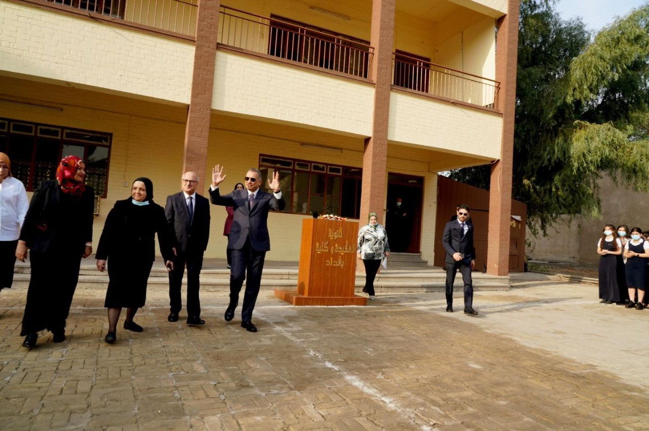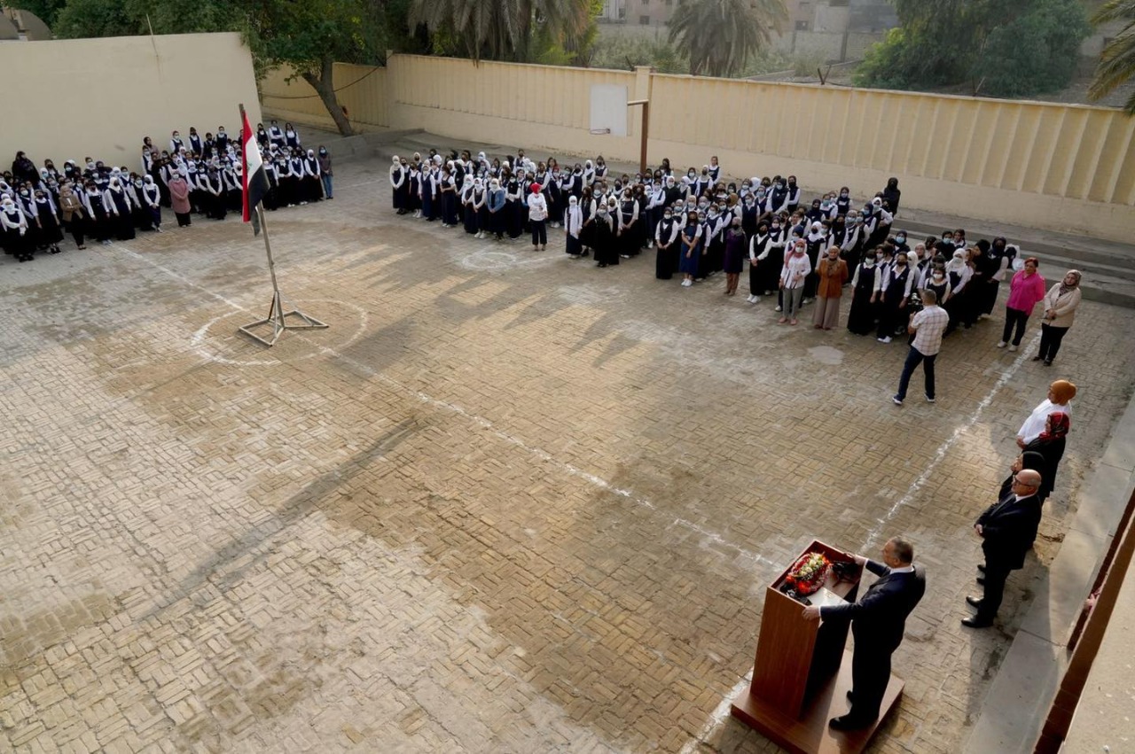 قرع رئيس مجلس الوزراء مصطفى الكاظمي، الاثنين، جرس بدء العام الدراسي الجديد من ثانوية العقيدة.