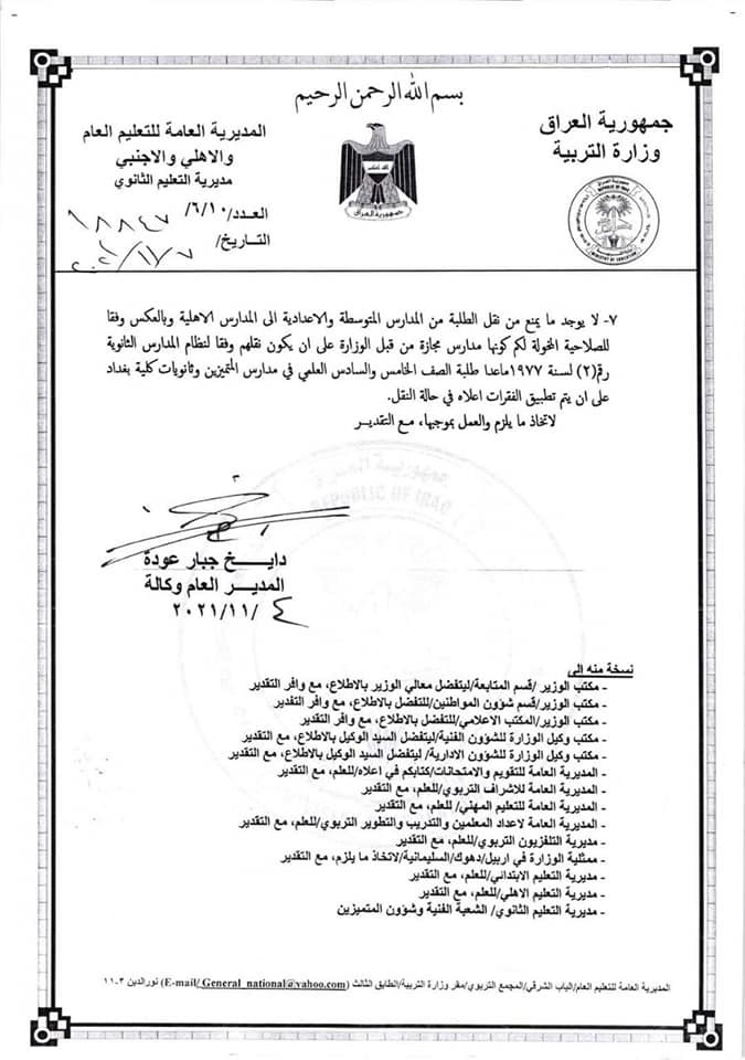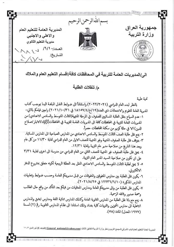 محلياتالتربية تحدد ضوابط انتقال التلاميذ والطلبة قبل 4 سنوات 6 مشاهدات شارك قد يهمك أيضا رياضة اتحاد الكرة ينفي ما تم تداوله بشأن عدنان درجال: شركات استثمار تحاول زج اسمه بمشاريع وهمية قبل 14 دقيقة 2 مشاهدات أقتصاد وزارة المالية تعلن المباشرة بإجراءات تمويل رواتب الموظفين قبل 36 دقيقة 4 مشاهدات محليات المالية توجه المصارف بالدوام يومي الجمعة والسبت لاستكمال صرف الرواتب.. وثيقة قبل 54 دقيقة 11 مشاهدات أمن شرطة الكرخ تُطيح بمبتز إلكتروني بكمين محكم في منطقة أبو دشير جنوبي بغداد قبل ساعة واحدة 8 مشاهدات عربي ودولي الجيش الإيراني يعلن تسلم سلاح استراتيجي لمواجهة أهداف بحرية وبرية وجوية قبل ساعة واحدة 9 مشاهدات