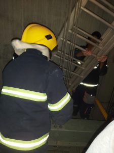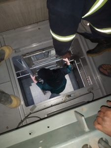 واوضحت، انه “تم النزول من الطابق السابع الى أعلى سقف المصعد وانزال سلم من فتحة خاصة في سقف المصعد المعطل لتتمكن الامرأة والطفل من الخروج بأمان وتنهي فرق الدفاع المدني واجبها دون تسجيل اصابات بشرية مع عدم التسبب بالضرر للمصعد المعطل”.