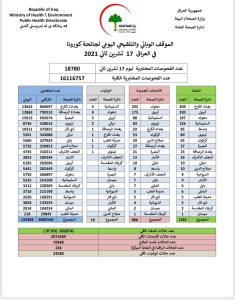 وأضافت، أن “حالات الوفاة الجديدة بالفيروس بلغت 18 حالة في عموم البلاد”.