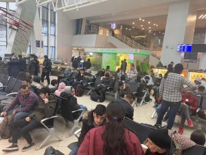 بالصور.. مهاجرون عراقيون في مطار مينسك يستعدون للعودة الى ارض الوطن
