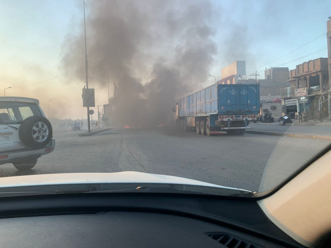 بالصور.. قطع شارع ابراهيم الخليل وسط الناصرية للمطالبة باقالة المحافظ