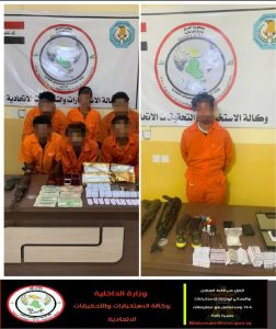 واضافت، انه”بعملية استباقية اخرى تكلل بالنجاح تمكنت مفارز وكالة الاستخبارات من القبض على احد المتاجرين بالمواد المخدرة و الاسلحة الغير مرخصة بعد مداهمة محل سكناة في المحافظة ذاتها وضبط لدية مادة بيضاء مخدرة (كرستال) تقدر (٩٩ ) غرام و بندقيتين كلاشنكوف و (٣)مسدسات و رماناتين يدوية هجومية غير منفلقة وحبوب مخدرة عدد( ٩٠٤٠ الاف حبة )والات حادة (سكين)عدد اثنان و ادوات تعاطي متنوعة وميزان صغير”.