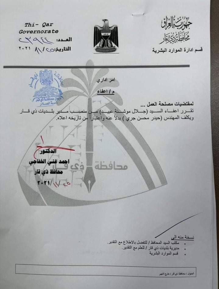 محلياتبالوثائق.. تغييرات بالجملة بالمناصب المحلية في ذي قار قبل 4 سنوات 12 مشاهدات شارك اصدر محافظ ذي قار احمد الخفاجي، الخميس، امرا بتغيير عدد كبير من المسؤولين المحليين في المحافظة. اقرأ ايضا العراق يستقبل موجة أمطار غزيرة.. الأنواء تحذر من سيول وفيضانات في المناطق غير المخدومة اعتباراً من الغد المالية تنفي استقبال نائبة للتفاوض مع وزيرتها بشأن مستحقات المقاولين العراق يستعد لاستقبال حالة جوية غير مستقرة وأمطار غزيرة اعتباراً من مساء الغد الصحة: نصف النزلاء في مستشفى الرشاد متماثلون للشفاء لكن ذويهم يرفضون استلامهم الوسومذي قارقد يهمك أيضا أمن مقتل شاب برصاصة أطلقها منتسب أمني بالخطأ خلال "مشاجرة اعتيادية" في أبي غريب غربي بغداد قبل ساعتين 7 مشاهدات رياضة مدرب الأرجنتين معلقاً على قرعة المونديال: منتخب الجزائر قوي والأردن مجهول بالنسبة لي قبل ساعتين 14 مشاهدات محليات العراق يستقبل موجة أمطار غزيرة.. الأنواء تحذر من سيول وفيضانات في المناطق غير المخدومة اعتباراً من الغد قبل 3 ساعات 16 مشاهدات محليات المالية تنفي استقبال نائبة للتفاوض مع وزيرتها بشأن مستحقات المقاولين قبل 3 ساعات 10 مشاهدات عربي ودولي البيت الأبيض يحذر: أوروبا مهددة بـ"زوال الحضارة" خلال 20 عاماً قبل 3 ساعات 9 مشاهدات