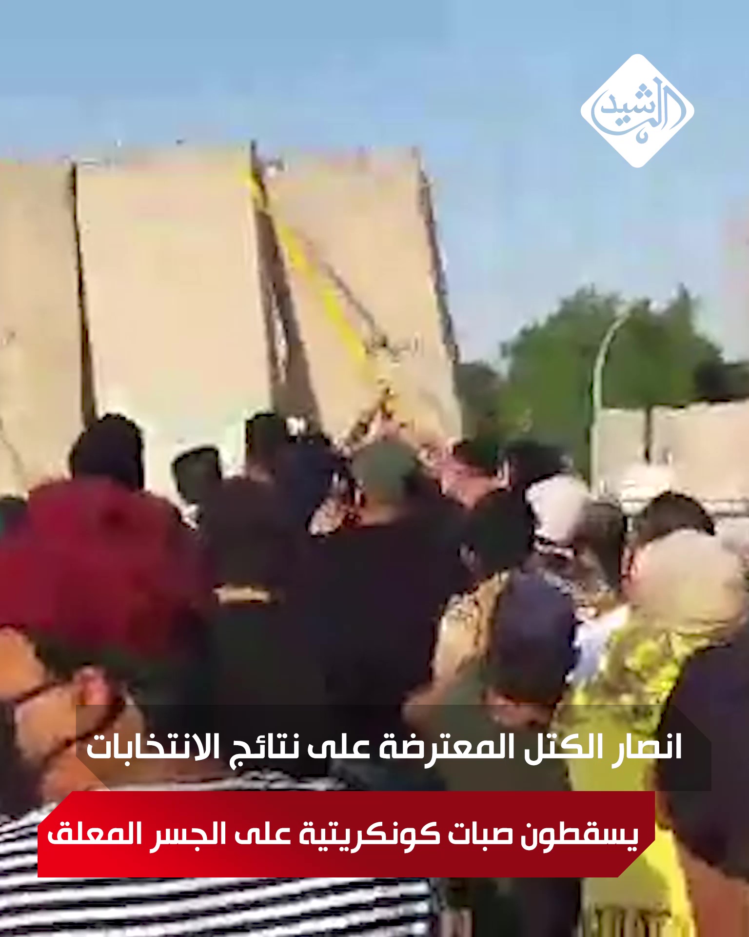 بالفيديو.. انصار الكتل المعترضة على نتائج الانتخابات يسقطون صبات كونكريتية على الجسر المعلق