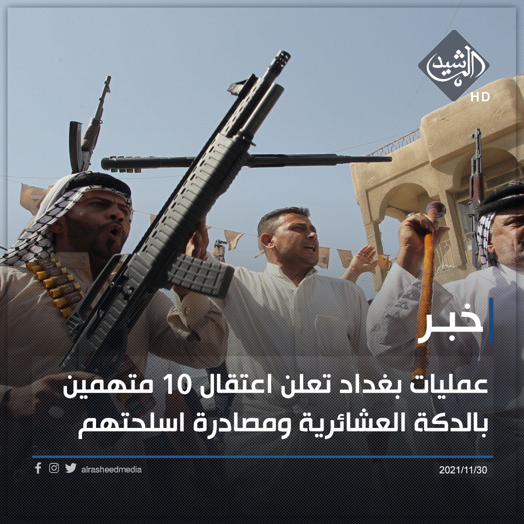 اعلنت قيادة عمليات بغداد، اليوم الثلاثاء، اعتقال 10 متهمين بالدكة العشائرية ومصادرة اسلحتهم.