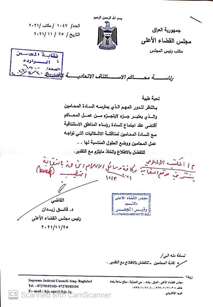 محلياتبالوثيقة.. القضاء يوجه المحاكم بعقد اجتماعات مع المحامين لمناقشة مشاكلهم قبل 4 سنوات 6 مشاهدات شارك قد يهمك أيضا أمن السفارة الأمريكية ببغداد تنوه لإجراء تمرين مشترك صباح الغد: تواجد أمني مكثف وتحركات للأفراد والآليات قبل 8 دقائق 2 مشاهدات عربي ودولي “عقبات دستورية”.. برلين وروما ترفضان الانضمام إلى “مجلس ترامب” قبل 52 دقيقة 4 مشاهدات سياسة بعد قرار المحكمة الاتحادية.. مجلس النواب يعلن القائمة النهائية للمرشحين لمنصب رئيس الجمهورية قبل ساعة واحدة 10 مشاهدات عربي ودولي استهدفت 9 ناقلات نفط و8 كيانات.. الخزانة الأمريكية تفرض عقوبات جديدة متعلقة بإيران قبل ساعة واحدة 6 مشاهدات رياضة باريس يفتح باب الرحيل أمام ديمبلي قبل ساعة واحدة 6 مشاهدات