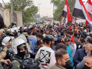 وقال مصدر امني للرشيد، ان”قوات حفظ النظام انتشرت بالقرب من الوزارتين، لتامين الممتلكات العامة وحماية التظاهرات”.