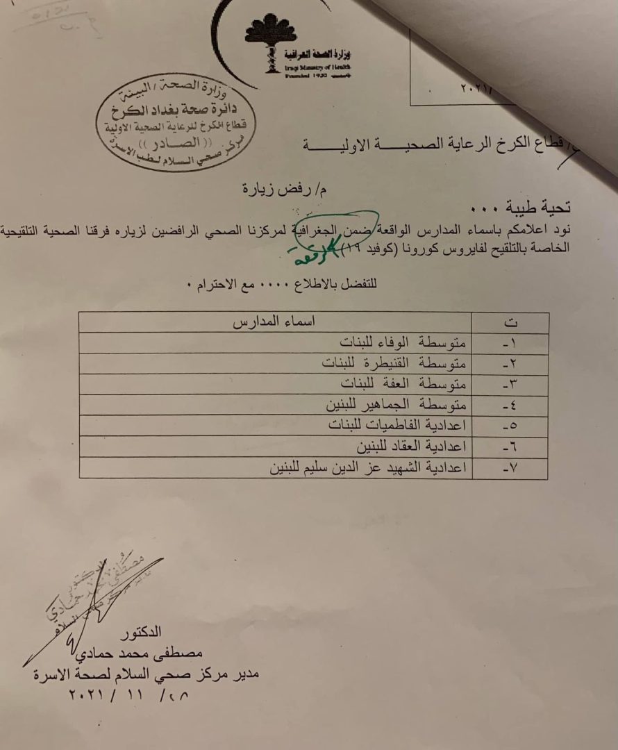 محلياتبالوثيقة .. 7 مدارس في جانب الكرخ ترفض زيارة الفرق الصحية التلقيحية لها قبل 4 سنوات 17 مشاهدات شارك الوسومكوروناقد يهمك أيضا أمن الداخلية: إجراءات صارمة ضد الممارسات المخالفة خلال احتفالات أعياد الميلاد ورأس السنة قبل 15 دقيقة 5 مشاهدات محليات الانواء الجوية: أمطار وثلوج وتصاعد للضباب بدءاً من الغد قبل 57 دقيقة 7 مشاهدات عربي ودولي الداخلية السورية: اعتقال زعيم تنظيم داعش بدمشق في عملية أمنية بالتعاون مع التحالف الدولي قبل 10 ساعات 14 مشاهدات سياسة السيد الصدر: لا مكان للتطبيع ولا لشرعنته في العراق قبل 10 ساعات 10 مشاهدات عربي ودولي الحرس الثوري الإيراني يوقف سفينة محملة بـ4 ملايين لتر من الوقود المهرب في مياه الخليج قبل 11 ساعة 11 مشاهدات