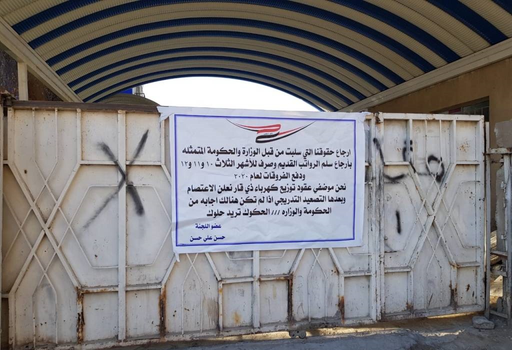 جدد موظفو العقود في دائرة توزيع كهرباء ذي قار، الاثنين، اغلاق مبنى الدائرة للمطالبة باعادة السلم القديم للرواتب وصرف مستحقاتهم المتاخرة.