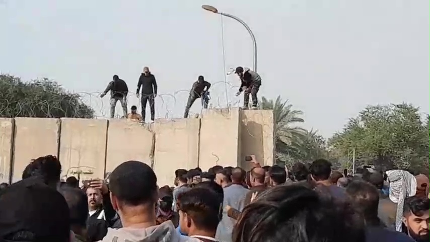 تظاهر انصار الكتل الرافضة لنتائج الانتخابات، قرب بوابات المنطقة الخضراء وسط العاصمة بغداد.
