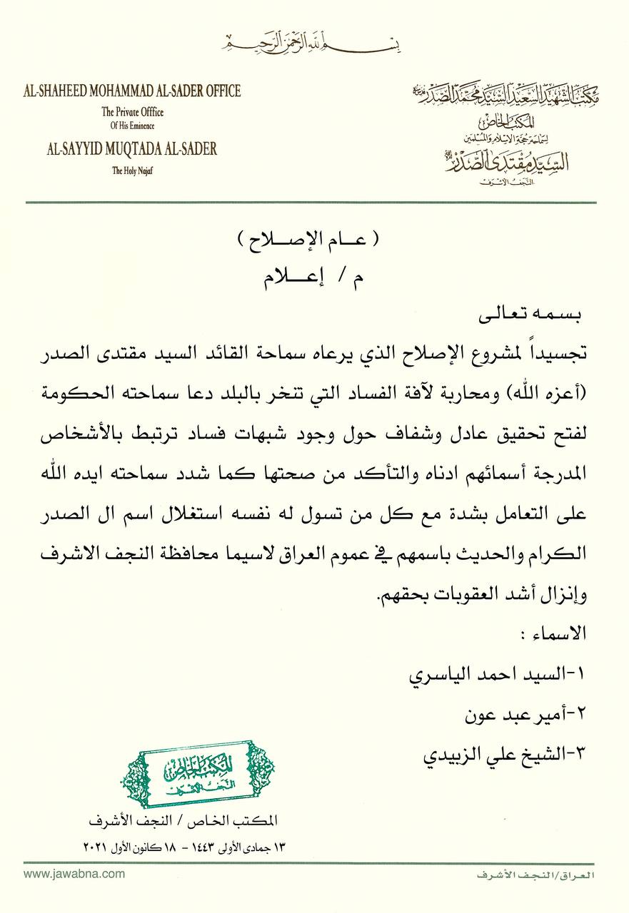 سياسةبالوثيقة .. الصدر يدعو الحكومة للتحقيق مع 3 اشخاص بشبهات فساد قبل 4 سنوات 3 مشاهدات شارك الوسومالصدرقد يهمك أيضا أمن مقتل شاب برصاصة أطلقها منتسب أمني بالخطأ خلال "مشاجرة اعتيادية" في أبي غريب غربي بغداد قبل ساعتين 7 مشاهدات رياضة مدرب الأرجنتين معلقاً على قرعة المونديال: منتخب الجزائر قوي والأردن مجهول بالنسبة لي قبل ساعتين 14 مشاهدات محليات العراق يستقبل موجة أمطار غزيرة.. الأنواء تحذر من سيول وفيضانات في المناطق غير المخدومة اعتباراً من الغد قبل 3 ساعات 16 مشاهدات محليات المالية تنفي استقبال نائبة للتفاوض مع وزيرتها بشأن مستحقات المقاولين قبل 3 ساعات 10 مشاهدات عربي ودولي البيت الأبيض يحذر: أوروبا مهددة بـ"زوال الحضارة" خلال 20 عاماً قبل 3 ساعات 9 مشاهدات