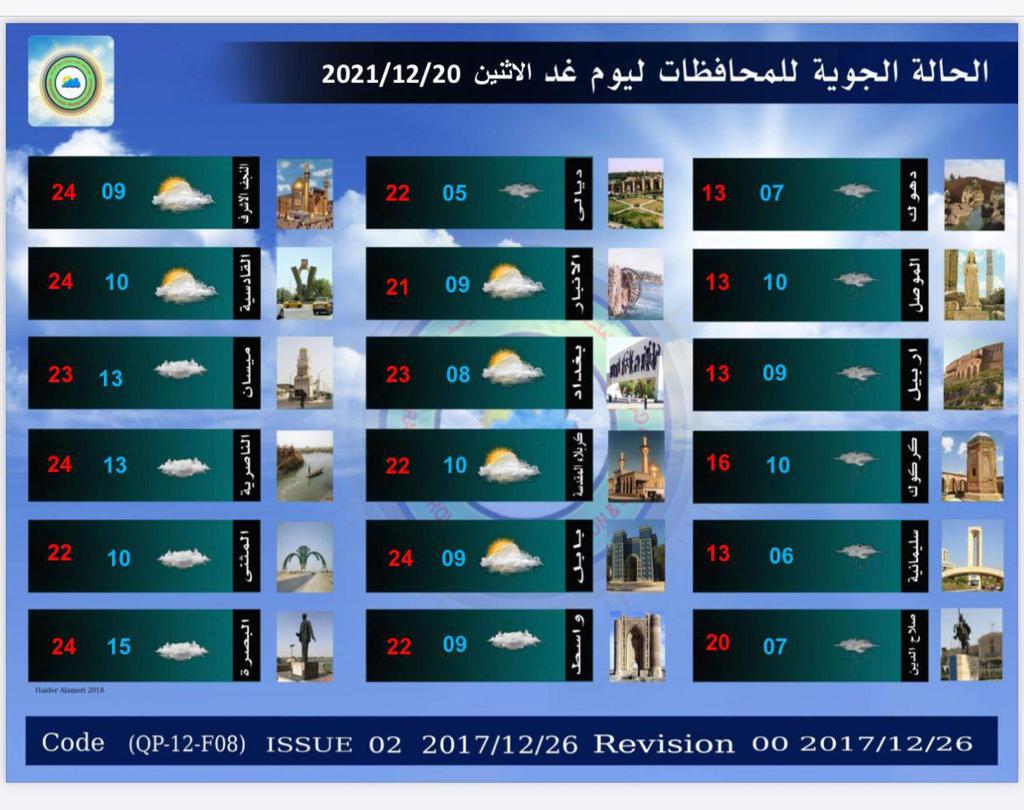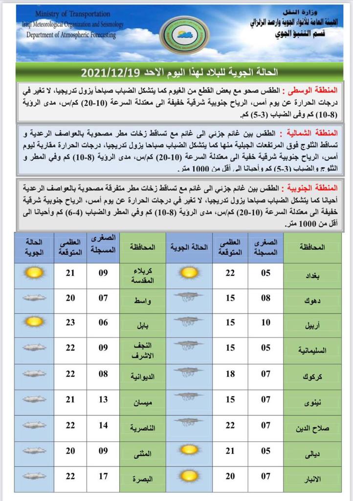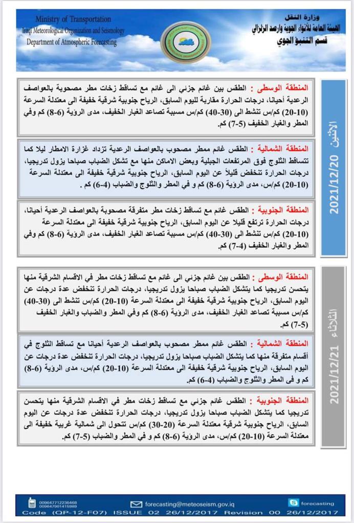 محلياتطقس العراق.. غائم مصحوب بزخات مطر خلال الايام المقبلة قبل 4 سنوات 2 مشاهدات شارك الطقساعلنت هيئة الانواء الجوية، الاحد، حالة طقس العراق خلال الايام المقبلة.اقرأ ايضا العدل تعلن إطلاق سراح 761 نزيلاً خلال تشرين الثاني طقس العراق.. أمطار رعدية وانخفاض بدرجات الحرارة خلال الأيام المقبلة المفوضية: الهيئة القضائية ردت أكثر من 800 طعن بنتائج الانتخابات حتى الآن الهيئة القضائية تحسم النظر بجميع الطعون المقدمة على نتائج الانتخابات الوسومطقس العراققد يهمك أيضا سياسة رئاسة الجمهورية تنفي علمها أو مصادقتها على قرار "اعتبار أنصار الله وحزب الله اللبناني" جماعات إرهابية قبل 15 دقيقة 4 مشاهدات عربي ودولي موسكو: قد يتم عقد لقاء بين بوتين وترامب في القريب العاجل قبل 57 دقيقة 6 مشاهدات رياضة "توالي الأزمات".. ليفربول يوجه ضربة قوية لمحمد صلاح ويقرر بيعه قبل ساعتين 7 مشاهدات عربي ودولي الرئيس اللبناني يطالب مجلس الأمن بالضغط على إسرائيل لتطبيق وقف إطلاق النار قبل ساعتين 8 مشاهدات محليات العدل تعلن إطلاق سراح 761 نزيلاً خلال تشرين الثاني قبل ساعتين 11 مشاهدات