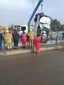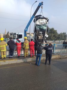 وذكرت المديرية في بيان تلقته”الرشيد”، ان”فرق انقاذ الدفاع المدني تمكنت من التعامل مع عجلة مدنية اصطدمت بسياج جسر سنحاريب الحديدي في ايسر الموصل لتهوي ساقطة من أعلاه الى الأرض لتتسارع فرق انقاذ الدفاع المدني لموقع الحادث”.