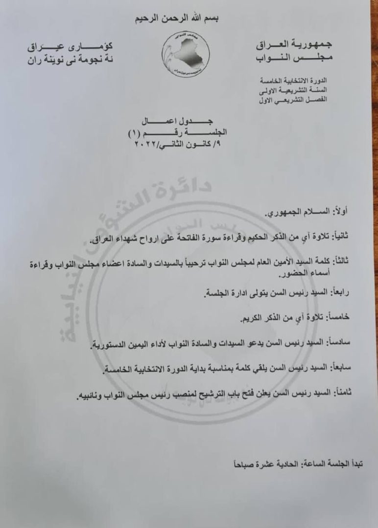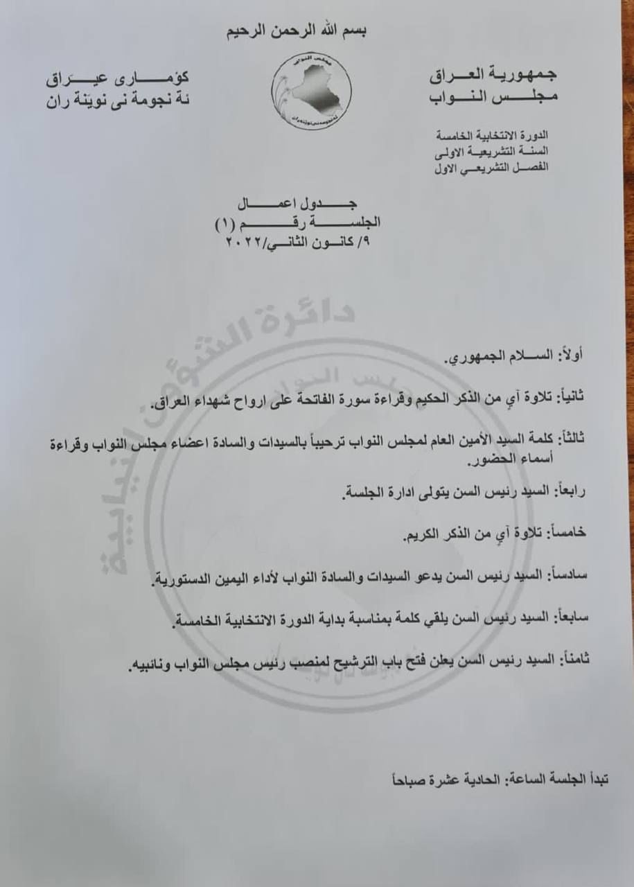 وقالت الدائرة بحسب وثيقة حصلت عليها الرشيد، إن “جدول أعمال الجلسة رقم واحد لسنة 2022 سيشمل ثماني فقرات كالآتي: