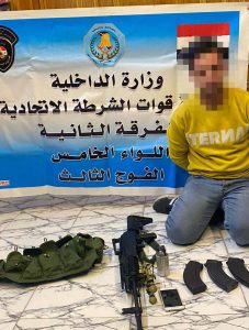 وذكرت القيادة، في بيان تلقته الرشيد، انه “بعد ورود معلومات دقيقة بوجود مشاجرة وإطلاق نار في منطقة (الدولعي) غربي العاصمة بغداد، على الفور تم تشكيل فريق أمني من اللواء الخامس الفرقة الثانية شرطة اتحادية بالاشتراك مع مفارز استخبارات الفوج الثالث للواء التابعة لوكالة الاستخبارات والتحقيقات الاتحادية ضمن قاطع مسؤولية الفوج الثالث ، تم خلالها القبض على الشخص المتهم وضبط بحوزته سلاح بندقية كلاشنكوف استخدم في الجريمة و3 مخزن بندقية، رمانة يدوية، جعبة مخازن بندقية”.