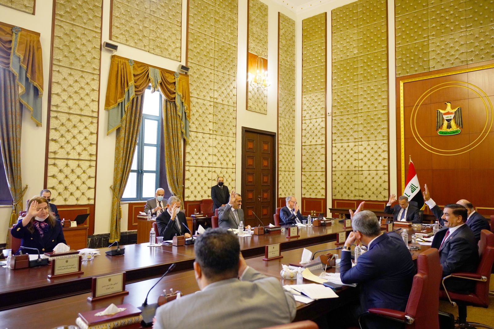 وشهدت جلسة مجلس الوزراء استعراض التقرير الوبائي، والإجراءات المتخذة لمواجهة جائحة كورونا، ومستجدات عمل لجنة تعزيز الإجراءات الحكومية في مجالات الوقاية، والسيطرة الصحية التوعوية؛ للحد من انتشار الفيروس، واستعدادات وزارة الصحة لمواجهة الموجة الجديدة من الجائحة وإجراءات احتوائها، ووجّه مجلس الوزراء وزارة الصحة ببذل أقصى الجهود في اتخاذ التدابير الوقائية، وتأمين العلاجات والمستلزمات المطلوبة، وتوفير اللقاحات، وحثّ المواطنين على أخذها عبر المنافذ الصحية المنتشرة في عموم العراق.