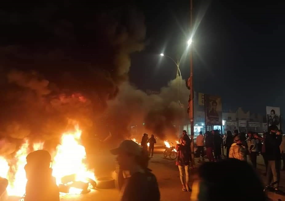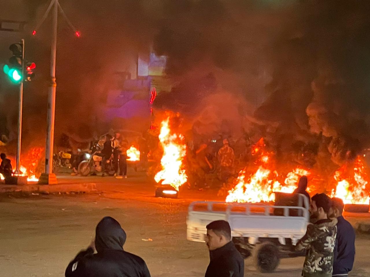 اقدم محتجون، اليوم الثلاثاء، على اغلاق تقاطع البهو بالاطارات المحترقة وسط الناصرية.