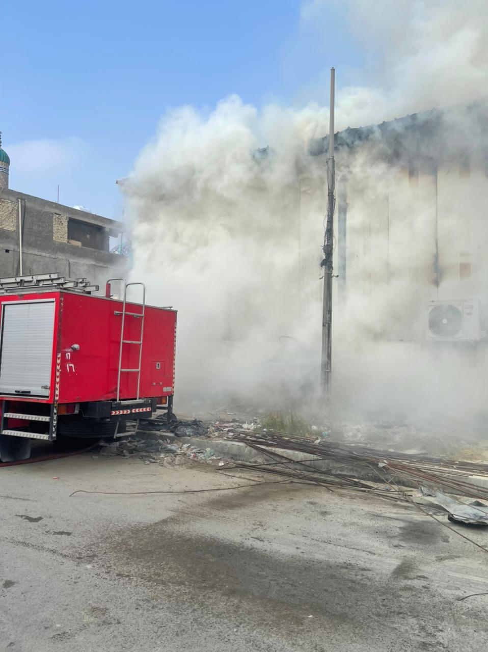 بالصور.. اندلاع حريق داخل مخزن ادوية في الحارثية والدفاع المدني يتدخل