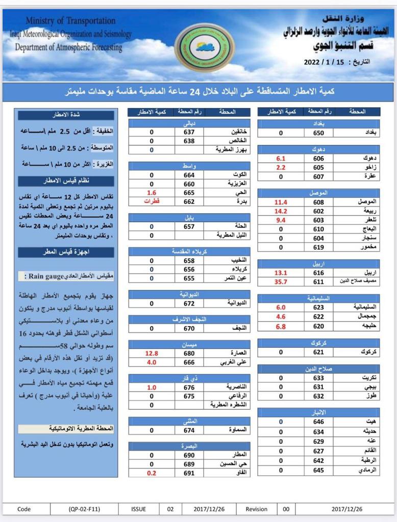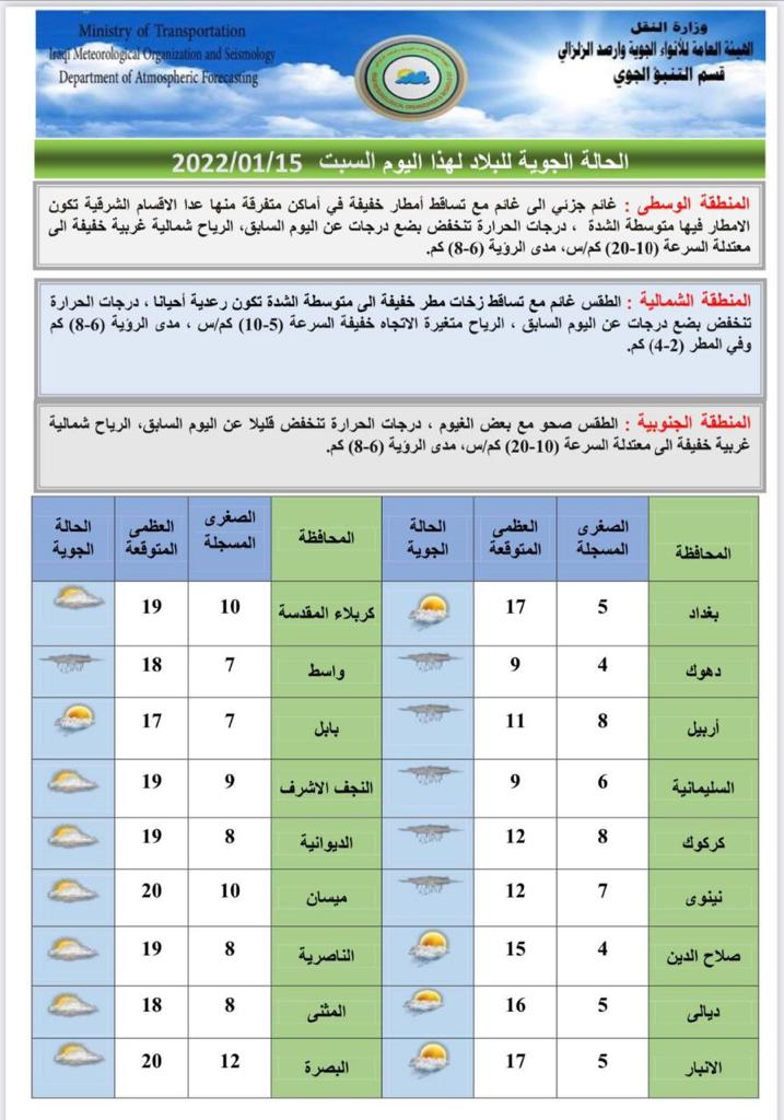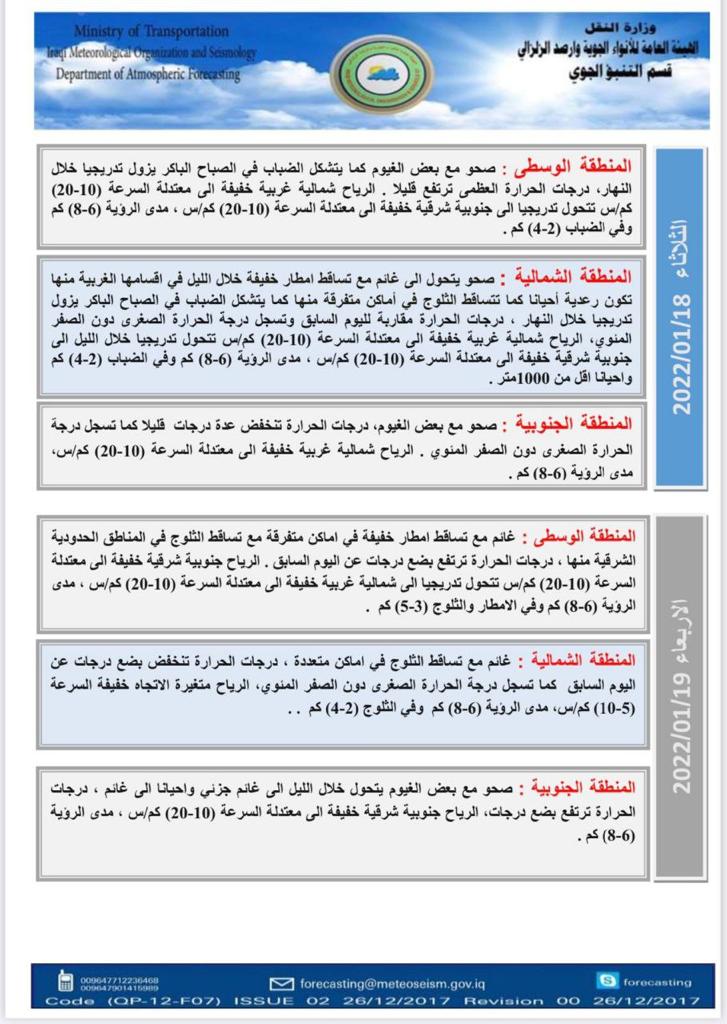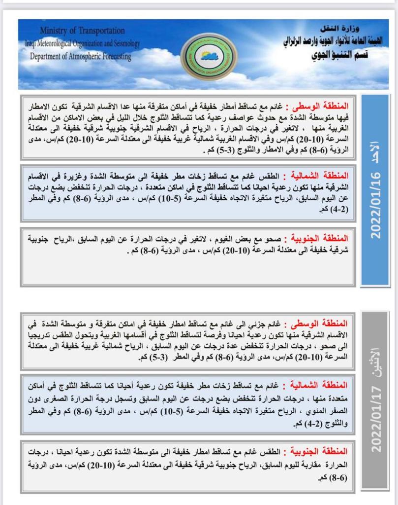 محلياتيوم غد.. العراقيون يستيقظون على الثلوج في عدة مناطق قبل 4 سنوات 5 مشاهدات شارك اقرأ ايضا التجارة تطلق خدمة رفع الحجب إلكترونياً لذوي الاحتياجات الخاصة في عدد من المحافظات عودة الحركة الملاحية في مطار بغداد الدولي التجارة: سيتم تفكيك العجلات القديمة وغير المتوافقة مع شروط السلامة بينها ارتداء الملابس غير المخلة.. المرور تصدر توجيهات تنظم عمل أصحاب حافلات النقل الجماعي الداخلي الوسومالثلوج في العراققد يهمك أيضا سياسة العراق يدين الهجوم الإرهابي بقاعدة الدعم اللوجستي التابعة لقوات الأمم المتحدة في السودان قبل 13 دقيقة 3 مشاهدات عربي ودولي هجوم مسلح يستهدف عناصر من "الدفاع السورية" غربي حلب قبل 19 دقيقة 3 مشاهدات أقتصاد وكالة "فيتش" تثبت تصنيف العراق الائتماني عند (B-) مع نظرة مستقبلية "مستقرة" قبل 30 دقيقة 4 مشاهدات عربي ودولي أستراليا: لا نقبل الربط بين الدولة الفلسطينية وهجوم سيدني قبل 33 دقيقة 5 مشاهدات محليات التجارة تطلق خدمة رفع الحجب إلكترونياً لذوي الاحتياجات الخاصة في عدد من المحافظات قبل ساعة واحدة 12 مشاهدات
