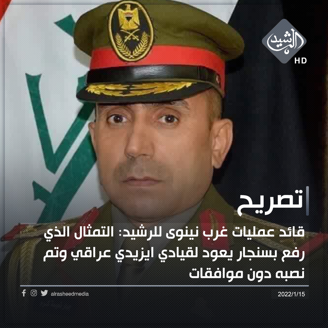 أمنقائد عمليات غرب نينوى للرشيد: التمثال الذي رفع بسنجار يعود لقيادي ايزيدي عراقي وتم نصبه دون موافقات قبل 4 سنوات 26 مشاهدات شارك الوسومسنجارقد يهمك أيضا أقتصاد الصناعة: تحقيق الاكتفاء الذاتي من غازي النيتروجين والأوكسجين وفرض رسوم على المستورد قبل 37 دقيقة 7 مشاهدات أقتصاد تعرف على اسعار صرف الدولار عند اغلاق البورصة قبل 38 دقيقة 4 مشاهدات عربي ودولي وزير الدفاع الإسرائيلي: لن ننسحب من غزة بالكامل أبداً وسنعيد استيطان شمال القطاع قبل ساعة واحدة 5 مشاهدات سياسة الكهرباء: خسارة المنظومة الكهربائية ما بين 4000 إلى 4500 ميغاواط قبل ساعة واحدة 4 مشاهدات سياسة وزارة الكهرباء تعلن توقف الغاز الإيراني بالكامل قبل ساعة واحدة 11 مشاهدات
