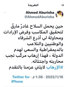 سياسةابو ريشة مغردا: الارهاب لا يثني عزمنا بالتقدم قبل 4 سنوات 5 مشاهدات شارك الوسوماحمد ابو ريشةقد يهمك أيضا سياسة البطريركية الكلدانية توضح بشأن ما تداولته بعض المواقع والصفحات من تصريحات لويس ساكو قبل 3 ساعات 15 مشاهدات عربي ودولي الداخلية السورية: اعتقال زعيم تنظيم داعش بدمشق في عملية أمنية بالتعاون مع التحالف الدولي قبل 4 ساعات 12 مشاهدات سياسة السيد الصدر: لا مكان للتطبيع ولا لشرعنته في العراق قبل 4 ساعات 10 مشاهدات عربي ودولي الحرس الثوري الإيراني يوقف سفينة محملة بـ4 ملايين لتر من الوقود المهرب في مياه الخليج قبل 5 ساعات 11 مشاهدات عربي ودولي الجيش الأردني يشن غارات استهدفت شبكات تهريب ومزارع مخدرات بريف السويداء قبل 5 ساعات 10 مشاهدات