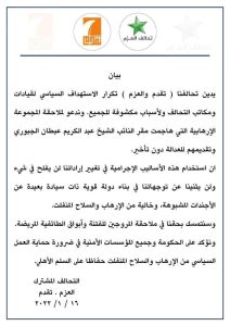 سياسةتقدم عزم: استخدام الاساليب الاجرامية لن يثنينا عن توجهاتنا في بناء دولة قوية قبل 4 سنوات 6 مشاهدات شارك قد يهمك أيضا سياسة رئاسة الجمهورية تنفي تصريحًا منسوبًا للرئيس بشأن تحديد راتبه التقاعدي بـ 90 مليون دينار قبل 31 دقيقة 6 مشاهدات أقتصاد الزراعة: منع استيراد الدجاج يهدف إلى دعم المنتج المحلي وتحقيق الأمن الغذائي قبل 53 دقيقة 6 مشاهدات عربي ودولي وكالة فارس: مقتل واصابة 20 شخصًا في هجوم على مقر للشرطة غربي إيران قبل ساعة واحدة 7 مشاهدات أمن اعفاء قائد شرطة بابل اللواء علي الحسناوي وتكليف اللواء عباس الزركاني بديلاً عنه قبل ساعتين 14 مشاهدات سياسة الحلبوسي والمشهداني يؤكدان أهمية تشريع القوانين المهمة وتفعيل الدور الرقابي للبرلمان قبل 3 ساعات 13 مشاهدات