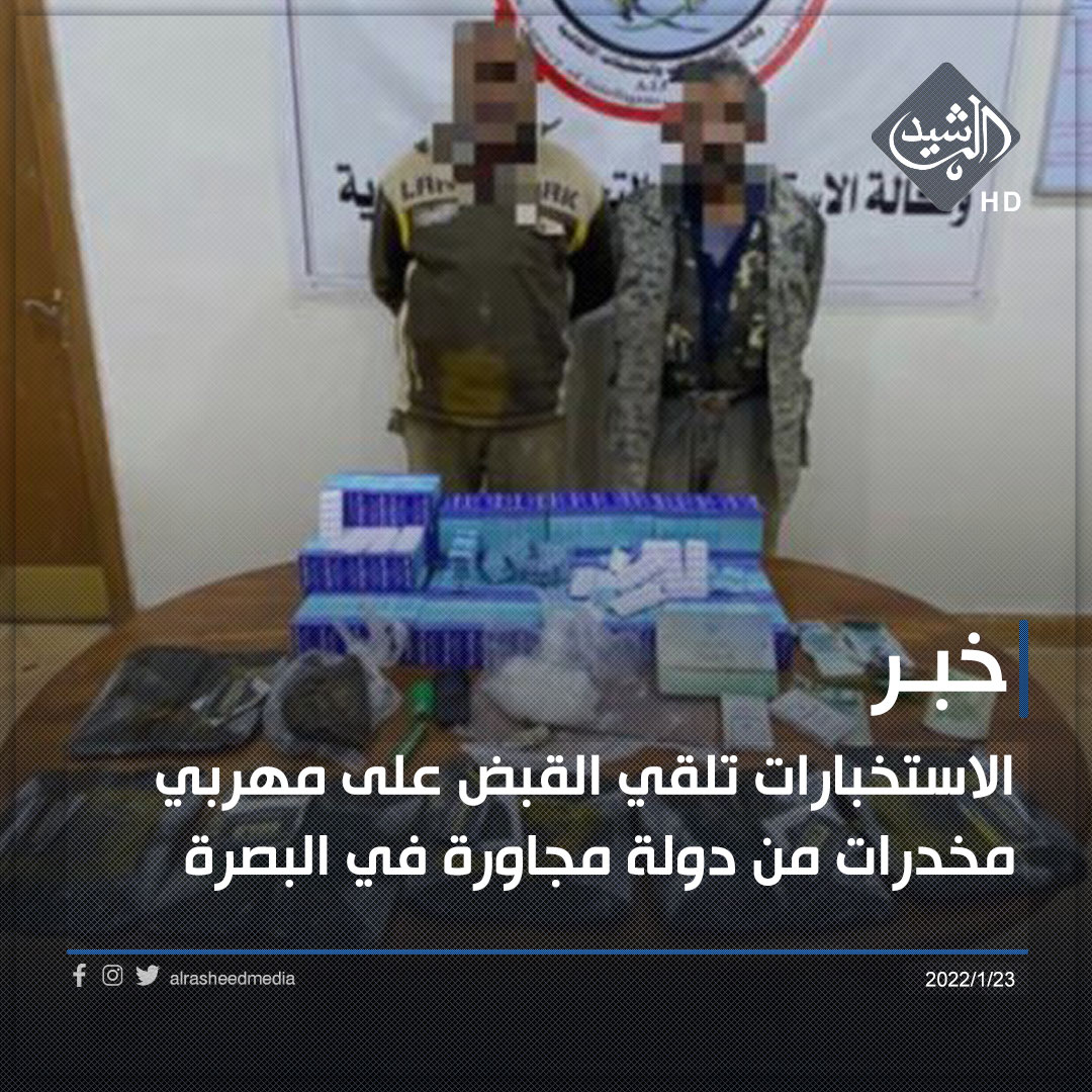 وذكرت الخلية في بيان تلقته الرشيد، انه”استمرارا لعملياتها الأمنية في مكافحة المخدرات والقضاء على هذه الافة الخطرة، تمكنت وكالة الاستخبارات والتحقيقات الاتحادية في وزارة الداخلية من إلقاء القبض على اثنين من المتهمين يحملان الجنسية الاجنبية قادمان من احدى دول الجوار يقومان بتهريب وتجارة المواد المخدرة في محافظة البصرة”.