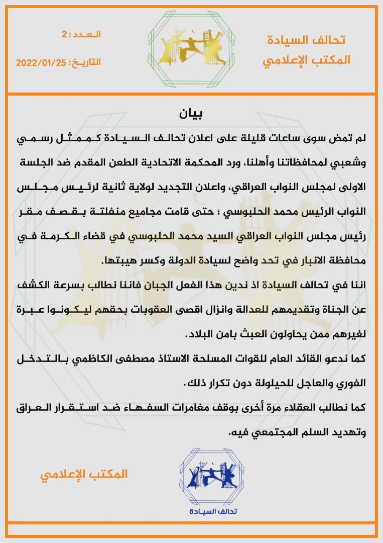سياسةتحالف السيادة: نطالب الكاظمي بالتدخل العاجل وندعو العقلاء لوقف مغامرات السفهاء قبل 4 سنوات 5 مشاهدات شارك الوسومتحالف السيادةقد يهمك أيضا عربي ودولي دول عربية وإسلامية تعلن رفضها لتصريحات إسرائيل بشأن فتح معبر رفح باتجاه واحد قبل 25 دقيقة 4 مشاهدات رياضة المنتخبات العربية في مجموعات صعبة.. الرشيد تنشر القرعة الكاملة للمونديال قبل 45 دقيقة 5 مشاهدات رياضة قرعة المونديال تسفر عن مواجهة عربية بين الأردن والجزائر قبل 51 دقيقة 4 مشاهدات رياضة قرعة المونديال تضع الفائز من مباراة الملحق العالمي لمنتخبنا إلى جانب فرنسا والنرويج والسنغال قبل 55 دقيقة 7 مشاهدات رياضة منتخب المغرب يقع في مجموعة البرازيل وانجلترا تصطدم بكرواتيا في قرعة المونديال قبل ساعة واحدة 8 مشاهدات