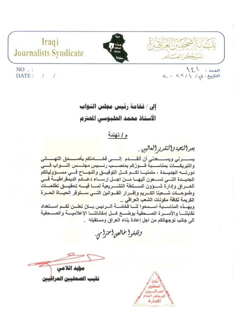 سياسةالحلبوسي يتلقَّى برقيةَ تهنئة من نقيب الصحفيين العراقيين مؤيد اللامي قبل 4 سنوات 5 مشاهدات شارك الوسومالحلبوسيمؤيد اللاميقد يهمك أيضا عربي ودولي ارتفاع عدد ضحايا الفيضانات والانهيارات الأرضية في إندونيسيا إلى 846 قبل 10 دقائق 2 مشاهدات عربي ودولي الإعلام الإسرائيلي بعد مقتل أبو شباب: "حماس" اخترقت مناطق سيطرتنا قبل 44 دقيقة 5 مشاهدات عربي ودولي الولايات المتحدة تقلص مدة تصاريح عمل المهاجرين إلى 18 شهرا قبل 59 دقيقة 6 مشاهدات عربي ودولي تفاصيل جديدة.. غارة أميركية تقتل عميلا سرياً في سوريا بدل قيادي داعشي قبل ساعة واحدة 7 مشاهدات سياسة المفوضية تحدّد آلية منح مقعد المرشح المستبعد: يحل محله أعلى الخاسرين من نفس الكتلة قبل ساعتين 6 مشاهدات