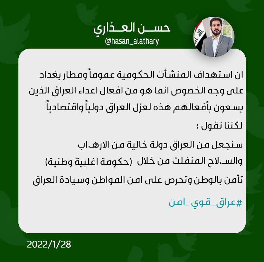 سياسةرئيس الكتلة الصدرية: استهداف المنشآت الحكومية ومطار بغداد من أفعال أعداء العراق قبل 4 سنوات 7 مشاهدات شارك الوسومحسن العذاريمطار بغداد الدوليقد يهمك أيضا سياسة المجلس السياسي الوطني يعلن الاتفاق على آليات تسهل حسم اختيار رئيس مجلس النواب قبل 5 ساعات 10 مشاهدات الحكم الرابع الـVAR يتلاعب بدورينا .. تفاصيل صادمة في الحكم الرابع قبل 5 ساعات 10 مشاهدات عربي ودولي الحكومة الليبية تعلن مقتل رئيس الأركان محمد الحداد ومرافقيه اثر تحطم طائرتهم في أنقرة قبل 5 ساعات 19 مشاهدات عربي ودولي مقتل رئيس الأركان الليبي "محمد الحداد" ومرافقيه بتحطم طائرتهم أثناء عودتهم من أنقرة قبل 5 ساعات 16 مشاهدات عربي ودولي وسائل إعلام تركية: العثور على حطام طائرة رئيس الاركان الليبي التي سقطت بعد إقلاعها من أنقرة قبل 6 ساعات 9 مشاهدات