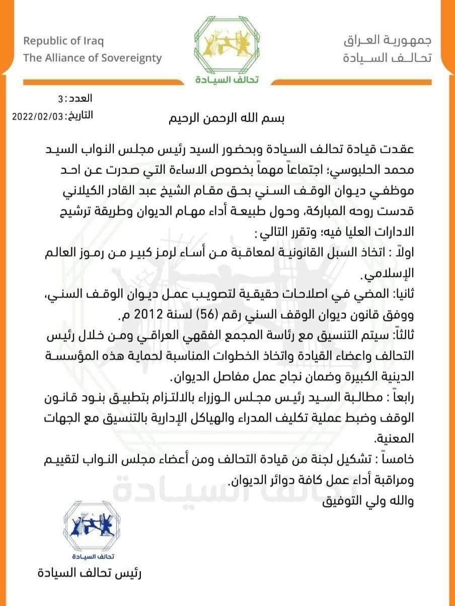 سياسةتحالف السيادة يجتمع بحضور الحلبوسي ويصدر قرارات بشأن الاساءة للشيخ الكيلاني قبل 4 سنوات 10 مشاهدات شارك الوسومتحالف السيادةقد يهمك أيضا عربي ودولي بوتين: جاهزون لتسوية في أوكرانيا قبل 11 دقيقة 4 مشاهدات محليات الدفاع المدني: إغلاق 10 آلاف مبنى ومشروع مخالفة لشروط السلامة قبل ساعة واحدة 7 مشاهدات عربي ودولي زوجها موقوف في العراق.. باريس تحكم بسجن فرنسية 10 سنوات لانتمائها لـ"داعش" قبل ساعة واحدة 7 مشاهدات محليات الكهرباء: 58% من الطاقة المجهزة لا تخضع للجباية قبل ساعتين 7 مشاهدات سياسة الجامعة العربية ترحب بانتخاب برهم صالح مفوضاً سامياً لشؤون اللاجئين قبل ساعتين 8 مشاهدات