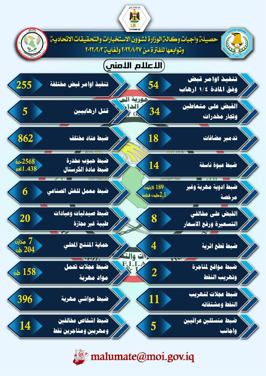 أمنحصيلة واجبات وكالة الاستخبارات: القبض على 54 ارهابيا ومئات المتهمين خلال اسبوع قبل 4 سنوات 5 مشاهدات شارك وكالة وكالة الاستخباراتالاستخبارات الوسوموكالة الاستخباراتقد يهمك أيضا عربي ودولي فنزويلا: احتجاز واشنطن لناقلة النفط الثانية قبالة سواحلنا "قرصنة" ولن تمر دون عقاب قبل 8 دقائق 2 مشاهدات عربي ودولي بينها صورة لترامب.. اختفاء 16ملفا من ملفات قضية إبستين قبل 30 دقيقة 6 مشاهدات عربي ودولي الكرملين: بوتين على استعداد للحاور مع ماكرون إن توفرت النوايا الحسنة قبل 57 دقيقة 6 مشاهدات عربي ودولي زيلينسكي يطالب واشنطن بتكثيف ضغوطها على روسيا لإنهاء النزاع في أوكرانيا قبل ساعة واحدة 7 مشاهدات محليات طقس العراق.. ضباب وانخفاض في درجات الحرارة خلال الأيام المقبلة قبل ساعتين 11 مشاهدات