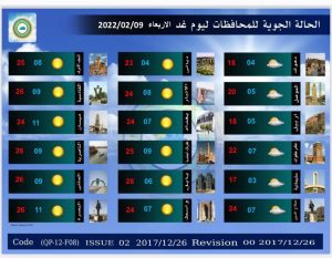 محلياتطقس العراق.. صحو ممزوج بالغيوم وارتفاع بدرجات الحرارة خلال الايام المقبلة قبل 4 سنوات 5 مشاهدات شارك اعلنت هيئة الانواء الجوية، حالة طقس العراق خلال الايام المقبلة، فيما اشارت الى ارتفاع بدرجات الحرارة. الوسومالطقسقد يهمك أيضا أمن الداخلية تنفي اي محاولة لعبور اشخاص من سوريا عبر الجدار الكونكريتي على الشريط الحدودي قبل ساعتين 9 مشاهدات عربي ودولي بيان دولي مشترك بشأن غزة: دعم المرحلة الأولى من الاتفاق وبنود خطة ترامب قبل ساعتين 7 مشاهدات سياسة رئيس مجلس القضاء يؤكد أهمية حسم تسمية المرشح لرئاسة الجمهورية خلال المدة الدستورية قبل 3 ساعات 7 مشاهدات سياسة القاضي زيدان: لا يمكن دستورياً وقانونياً تأجيل او تمديد جلسة البرلمان الجديد الاولى قبل 3 ساعات 9 مشاهدات سياسة القاضي زيدان: جلسة البرلمان الاولى يجب أن تنتهي بحسم تسمية رئيس مجلس النواب ونائبيه قبل 3 ساعات 8 مشاهدات