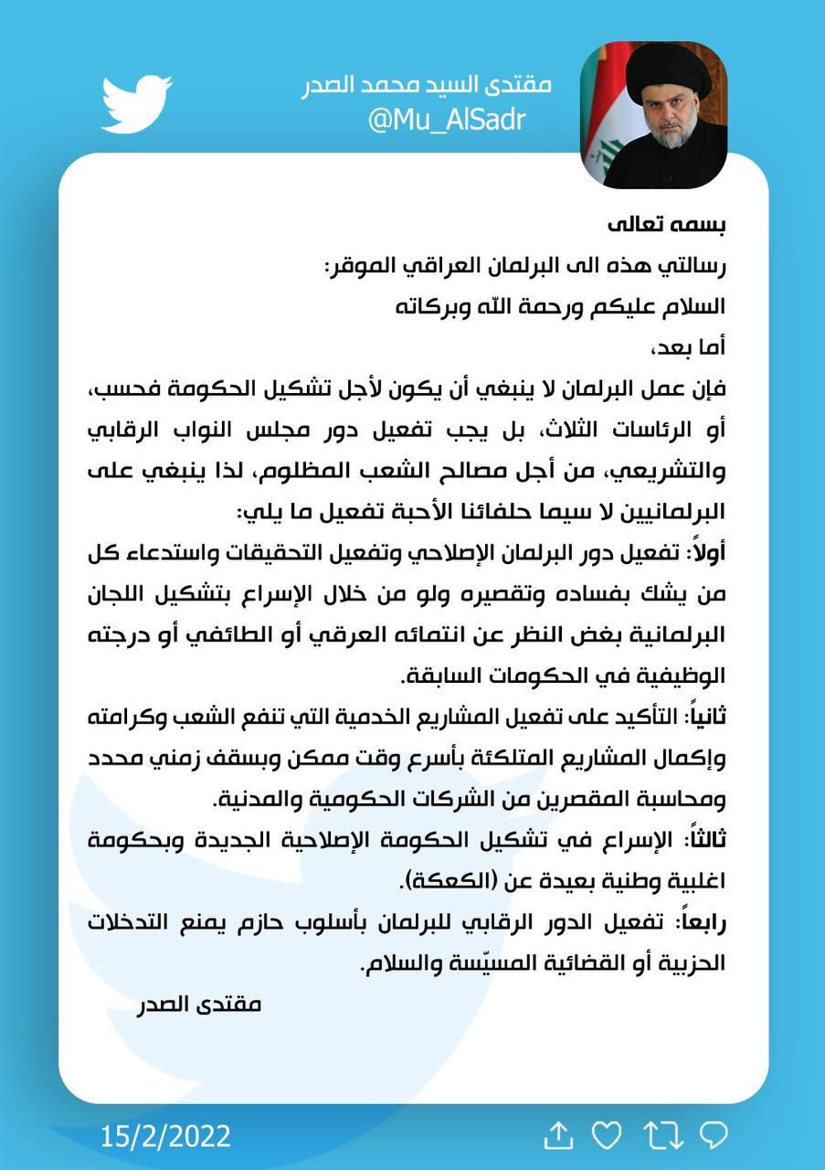 سياسةالسيد الصدر يدعو للاسراع بتشكيل الحكومة الاصلاحية باغلبية وطنية بعيدة عن (الكعكة) قبل 4 سنوات 5 مشاهدات شارك الوسومالصدرقد يهمك أيضا أمن مقتل شاب برصاصة أطلقها منتسب أمني بالخطأ خلال "مشاجرة اعتيادية" في أبي غريب غربي بغداد قبل 7 ساعات 9 مشاهدات رياضة مدرب الأرجنتين معلقاً على قرعة المونديال: منتخب الجزائر قوي والأردن مجهول بالنسبة لي قبل 7 ساعات 18 مشاهدات محليات العراق يستقبل موجة أمطار غزيرة.. الأنواء تحذر من سيول وفيضانات في المناطق غير المخدومة اعتباراً من الغد قبل 8 ساعات 17 مشاهدات محليات المالية تنفي استقبال نائبة للتفاوض مع وزيرتها بشأن مستحقات المقاولين قبل 8 ساعات 10 مشاهدات عربي ودولي البيت الأبيض يحذر: أوروبا مهددة بـ"زوال الحضارة" خلال 20 عاماً قبل 8 ساعات 10 مشاهدات