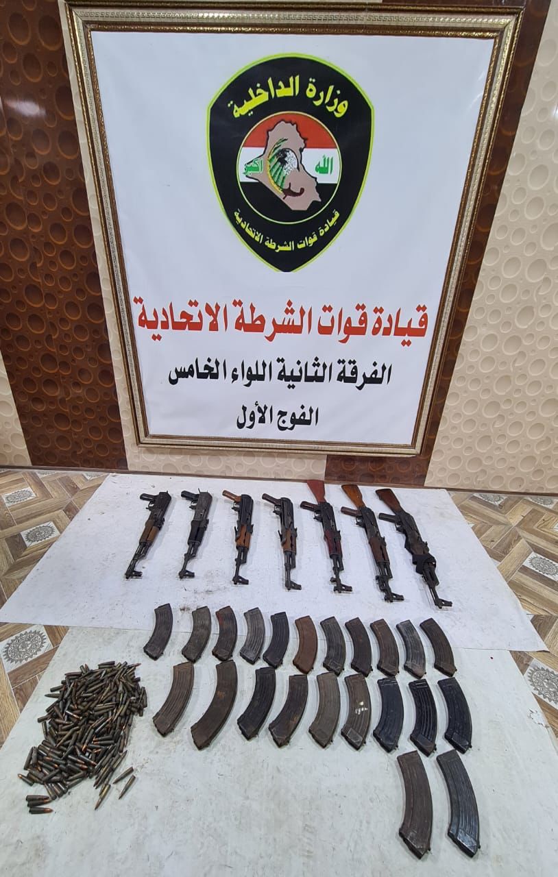 اعلنت قيادة الشرطة الاتحادية، اليوم الثلاثاء، القبض على مطلوبين وضبط أسلحة غير مرخصة غربي بغداد.