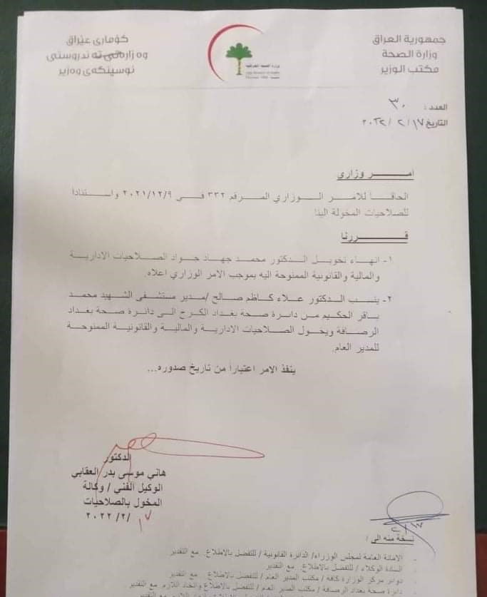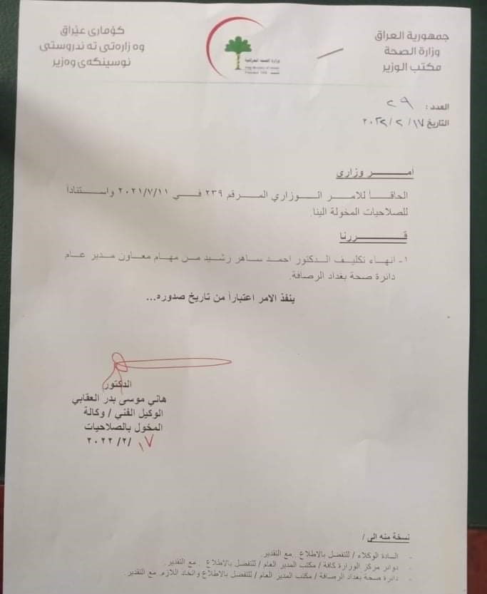 محلياتبالوثائق.. انهاء تكليف مدير صحة الرصافة ومعاونه قبل 4 سنوات 5 مشاهدات شارك الوسومالصحةقد يهمك أيضا أمن مقتل شاب برصاصة أطلقها منتسب أمني بالخطأ خلال "مشاجرة اعتيادية" في أبي غريب غربي بغداد قبل 6 ساعات 9 مشاهدات رياضة مدرب الأرجنتين معلقاً على قرعة المونديال: منتخب الجزائر قوي والأردن مجهول بالنسبة لي قبل 6 ساعات 18 مشاهدات محليات العراق يستقبل موجة أمطار غزيرة.. الأنواء تحذر من سيول وفيضانات في المناطق غير المخدومة اعتباراً من الغد قبل 6 ساعات 17 مشاهدات محليات المالية تنفي استقبال نائبة للتفاوض مع وزيرتها بشأن مستحقات المقاولين قبل 7 ساعات 10 مشاهدات عربي ودولي البيت الأبيض يحذر: أوروبا مهددة بـ"زوال الحضارة" خلال 20 عاماً قبل 7 ساعات 10 مشاهدات