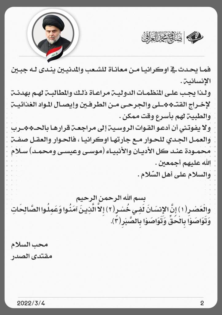 سياسةالسيد الصدر يدعو روسيا الى مراجعة قرارها بالحرب والحوار مع اوكرانيا قبل 4 سنوات 5 مشاهدات شارك الوسومالصدراوكرانياروسياقد يهمك أيضا أمن مقتل شاب برصاصة أطلقها منتسب أمني بالخطأ خلال "مشاجرة اعتيادية" في أبي غريب غربي بغداد قبل 8 ساعات 9 مشاهدات رياضة مدرب الأرجنتين معلقاً على قرعة المونديال: منتخب الجزائر قوي والأردن مجهول بالنسبة لي قبل 8 ساعات 20 مشاهدات محليات العراق يستقبل موجة أمطار غزيرة.. الأنواء تحذر من سيول وفيضانات في المناطق غير المخدومة اعتباراً من الغد قبل 9 ساعات 18 مشاهدات محليات المالية تنفي استقبال نائبة للتفاوض مع وزيرتها بشأن مستحقات المقاولين قبل 9 ساعات 10 مشاهدات عربي ودولي البيت الأبيض يحذر: أوروبا مهددة بـ"زوال الحضارة" خلال 20 عاماً قبل 9 ساعات 10 مشاهدات