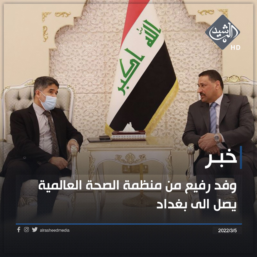 وقالت الوزارة، في بيان تلقته الرشيد، أن “وزير الصحة هاني العقابي استقبل اليوم السبت الموافق 5 اذار 2022، احمد المنظري المدير الاقليمي لمكتب دول شرق المتوسط في منظمة الصحة العالمية ووفدا رفيع المستوى من منظمة الصحة العالمية في مطار بغداد الدولي حال وصوله للعاصمة بغداد وبحضور مدير مكتب المنظمة في العراق الدكتور أحمد زويتن”.