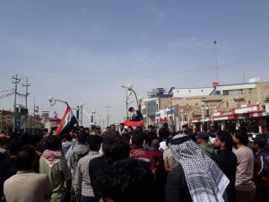 نظم العشرات، الثلاثاء، تظاهرة في قضاء سوق الشيوخ بذي قار احتجاجا على ارتفاع اسعار المواد الغذائية.